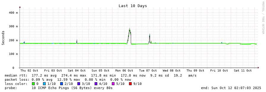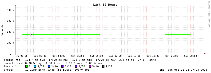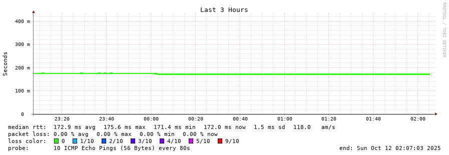 12 > node-203-171-240-1.alliancebroadband.in (203.171.240.1) [AS23860] 171.892ms 172.033ms 171.608ms