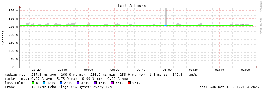 11 > tky018ix50.IIJ.Net (58.138.98.54) [AS2497] 256.328ms 257.137ms 256.417ms