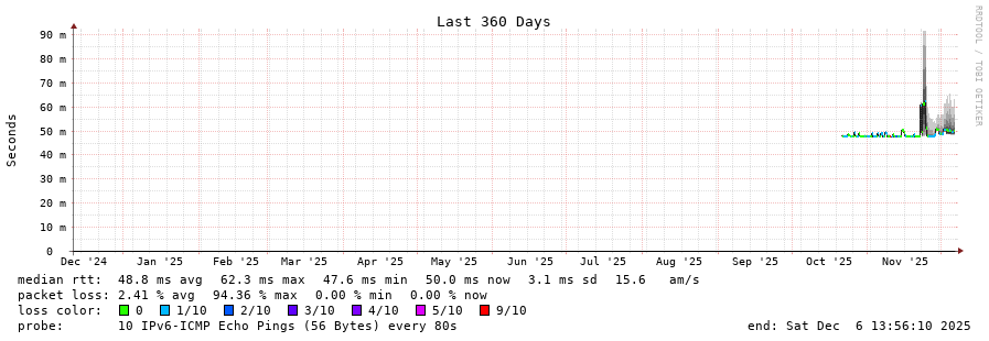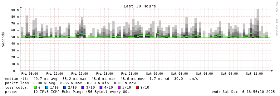 traceroute to 2a0c:9a40:8610:e3f::1 (2a0c:9a40:8610:e3f::1), 30 hops max, 80 byte packets - Generated at 2025-12-06 13:30:01