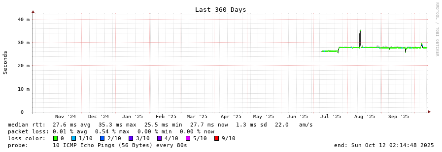traceroute to 213.133.107.7 (213.133.107.7), 30 hops max, 60 byte packets - Generated at 2025-10-12 02:00:01