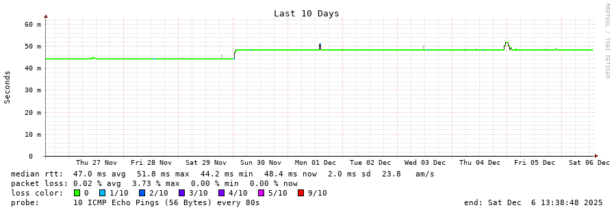 19 > 194.243.137.37 (194.243.137.37) [AS19905] 47.399ms 47.267ms 47.305ms