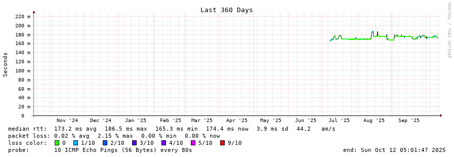 traceroute to 142.44.208.216 (142.44.208.216), 30 hops max, 60 byte packets - Generated at 2025-10-12 04:45:01