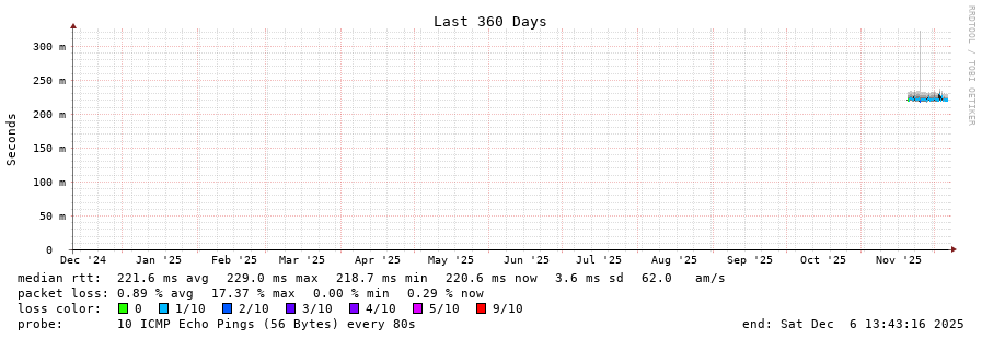 traceroute to 168.227.47.46 (168.227.47.46), 30 hops max, 60 byte packets - Generated at 2025-12-06 13:30:01