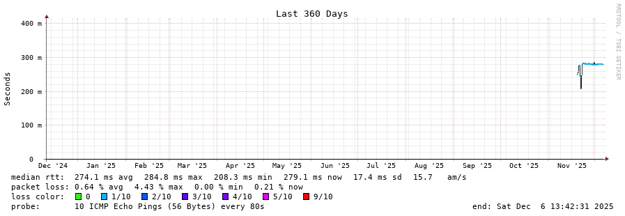 23 > 168.194.104.21 (168.194.104.21) [AS264528] 276.006ms 275.995ms 276.016ms