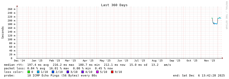 traceroute to 167.249.147.185 (167.249.147.185), 30 hops max, 60 byte packets - Generated at 2025-12-06 13:30:01