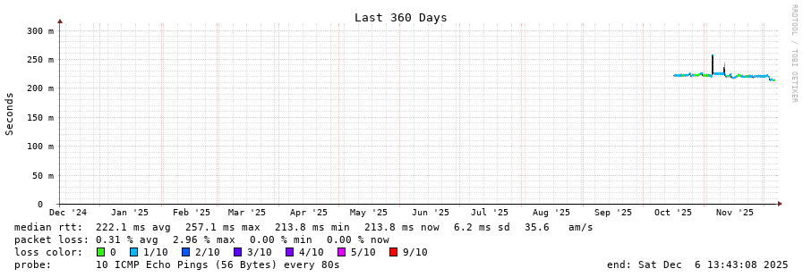 13 > 200.25.56.63 (200.25.56.63) [AS7195] 213.740ms 213.775ms 213.766ms