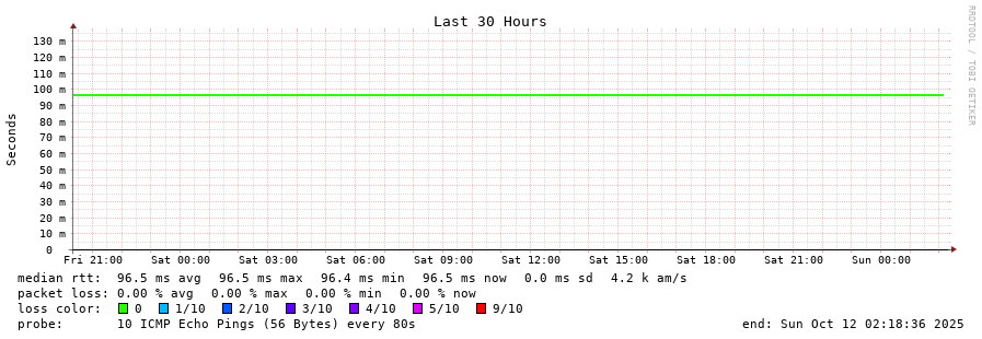 14 > 64.230.97.181 (64.230.97.181) [AS577] 96.488ms 96.548ms 96.481ms
